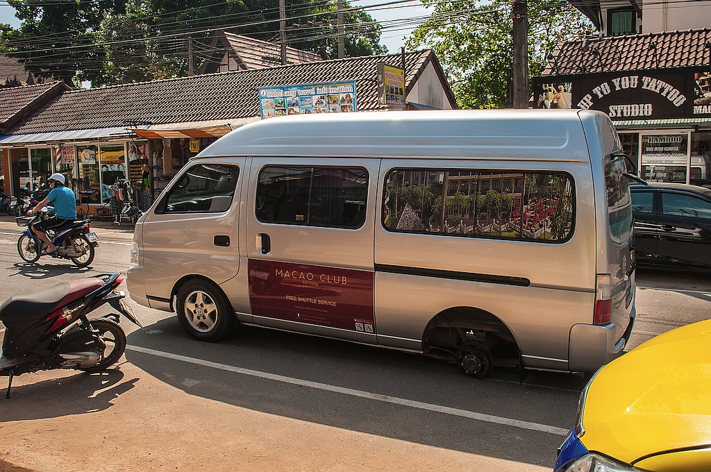 Wir nahmen uns ein TukTuk und fuhren nach White Sands zum Shoppen. Die Ausbeute war aber gering: Ein Armband für mich. Als wir uns in eine Bar setzten, um was zu trinken, gab es auf der Straße einen Knall und es flog das Rad eines Autos über die Straße und traf einen Motorroller, der dadurch um viel. Ein Transporter hatte es verloren. Kann ja mal passieren, wenn man keinen TÜV kennt.