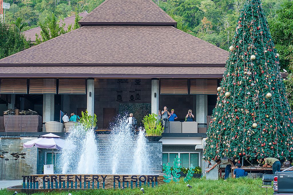 Das "The Greenery Resort" in Khao Yaik hatte 4 thailändische Sterne und lag versteckt am Rande der Berge des Nationalparks. Eine lange, bewachte Zufahrtsstrasse von der Hauptstrasse fühte zu dem Hotel. Das Hotel bestand aus mehreren Häuserblöcken, mit allem, was man sich wünschte (oder auch nicht). Auch eine Karaokebar und ein Pool waren vorhanden.