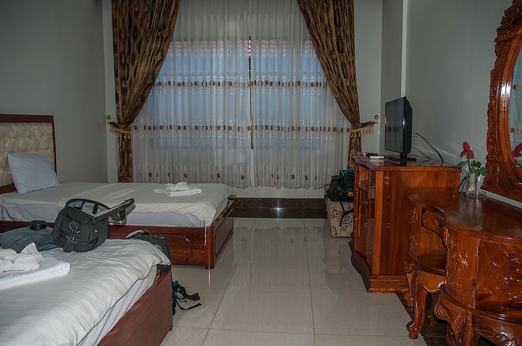 Das "Hotel Monorome VIP" in Kampong Cham stand unter chinesischer Leitung (was man auch schnell an der Einrichtung sah) und lag direkt am Ufer des Mehkong. In der Umgebung gab es nicht viel. Keine Restaurants oder Läden.