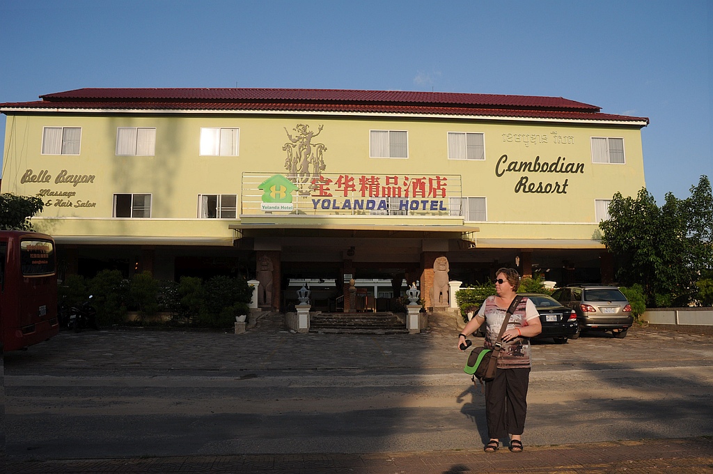 Das "New Riverside Hotel" in Siem Reap machte seinem Namen alle Ehre. Es war erst neu eröffnet worden. Unser Zimmer im Erdgeschoss war gross, hatte eine Terrasse mit Liegestühlen und direktem Zugang zum Pool, Fliesenboden, Doppelbett, Bad mit Dusche, Flachbildschirm, Klimaanlage mit Fernbedienung, schnelles und kostenloses WLAN (WPA2 Verschlüsselt) und auch genug Steckdosen. Es gab sogar einen kostenlosen TukTuk-Service zur City.
