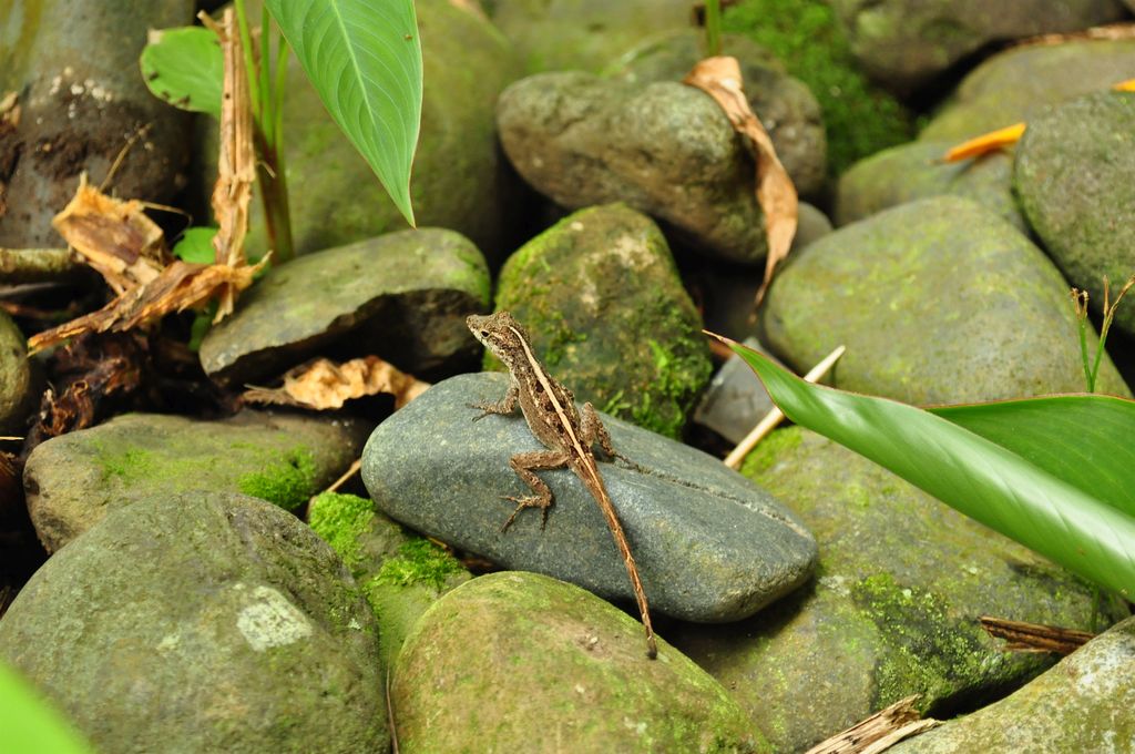 Dabei entdeckte ich einen gepunkteten Pumillio (also einen Pfeilgiftfrosch) und eine mir unbekannte, kleine Echse.