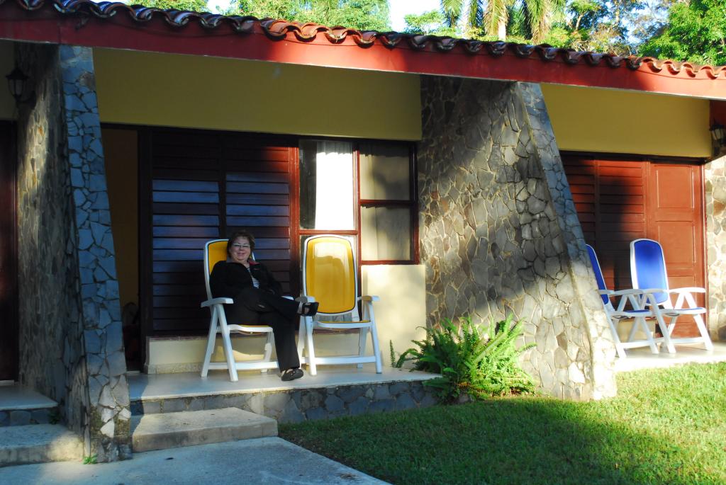 Das "Hotel Rancho San Vicente" in Viñales hatte 3 Sterne und war sehr ruhig, mitten im Wald gelegen. Es bildeten jeweils 4 ebenerdige Zimmer ein Haus. Jedes Zimmer darin hatte eine eigene kleine Terrasse mit zwei Stühlen. Es gab im Zimmer ein riesiges Doppelbett mit einer viel zu weichen Matratze, einen Fernseher und eine Klimaanlage.