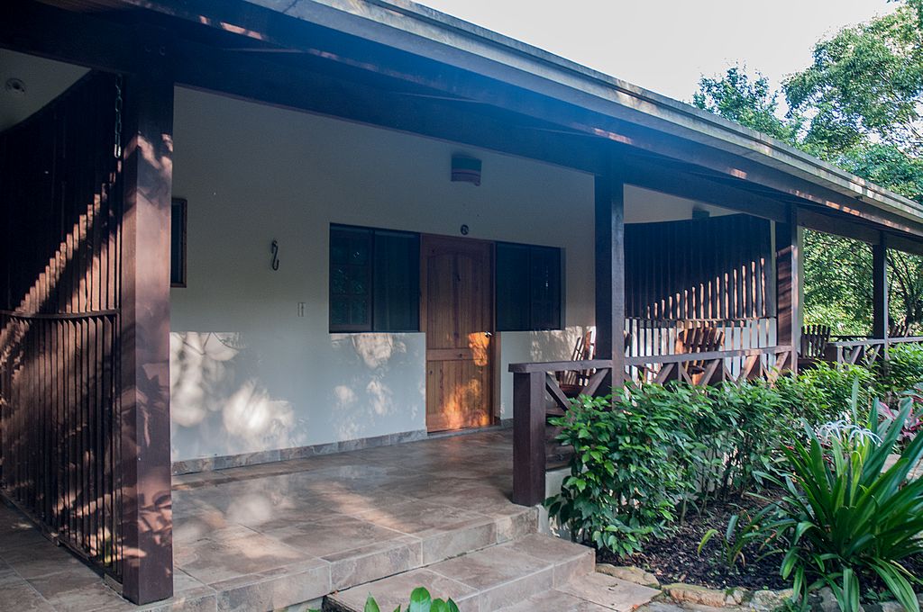 Alle mit Schaukelstühlen und Hängematte auf der Terrasse. Unsere Lodge hatte Steinboden, keine Klimaanlage und auch keinen TV, keinen Kühlschank oder Safe. Dafür Deckenventilator und eine große Dusche. Auch genug Licht und Steckdosen (110V Flachstecker). Die Küche war einfach und das Restaurant eine Überdachte Fläche mit Bar.