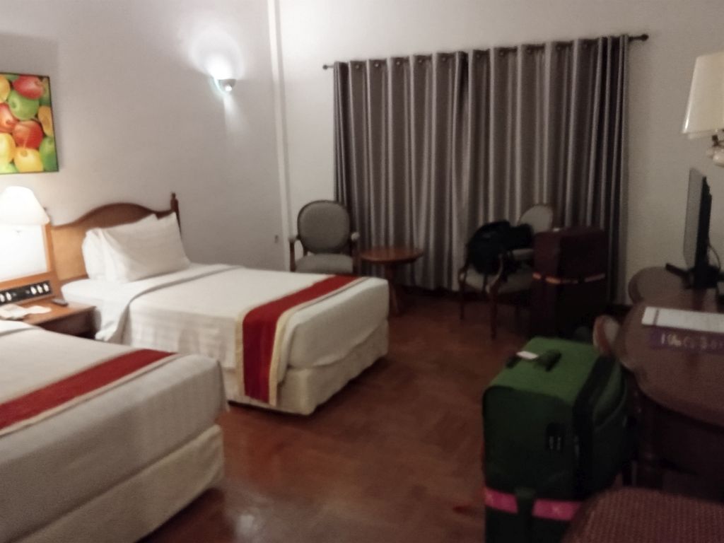 Das Sinaburg Hills in Berastagi (Sumatra) hatte 4 Sterne. Unser Zimmer ohne Balkon lag in der 3. Etage , die man mit einem gläsernem Fahrstuhl erreichen konnte und ging so. Es gab einen Spiegel, Schreibtisch, Einzelbetten, TV, Klimaanlage und warmes Wasser. Einen Pool im Aussenbereich gab es auch so wie den Frühstücksraum, wo man abends noch ein Bier trinken konnte.