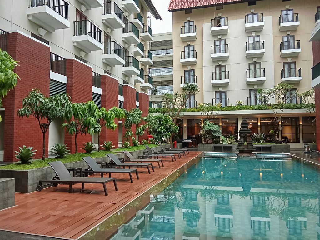 Das Gallery Prawirota in Yogyakarta (Java) hatte 4 Sterne. Trotz der Sterne hatte es uns nicht sonderlich begeistert, da wir nur einen kleinen Nichtraucher-Balkon zur Straße hatten. Weiterhin hatte das Zimmer im 3.Stock TV, Klimaanlage, WIFI, einen Schreibtisch und ein Doppelbett. Eine Hotelbar gab es nicht, sondern nur ein Restaurant. Im Hof gab es einen schönen Garten mit Pool und auch einen Kinderpool. Eine zweite Zimmerkarte für die Tür konnte man auf Nachfrage an der Rezeption bekommen.