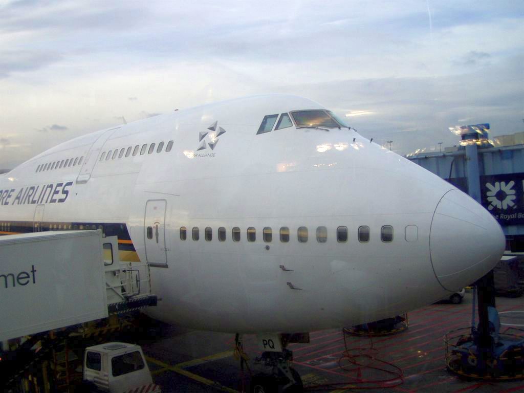 Im Flughafen von Singapur, dem ersten uns bekannten Flughafen, der komplett mit Teppich ausgelegt war, waren wir (Ortszeit: 6:50 morgens) nach einem zweistündigen Aufenthalt in eine andere 747 der Singapore Airlines umgestiegen.