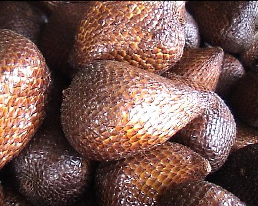 Unterwegs besichtigten wir eine traditionelle Töpferei und hielten bei einem Händler am Straßenrand, um Schlangenfrüchte („Salak“) zu probieren – außen schuppenartig, innen süß-sauer mit weißen Kernen.