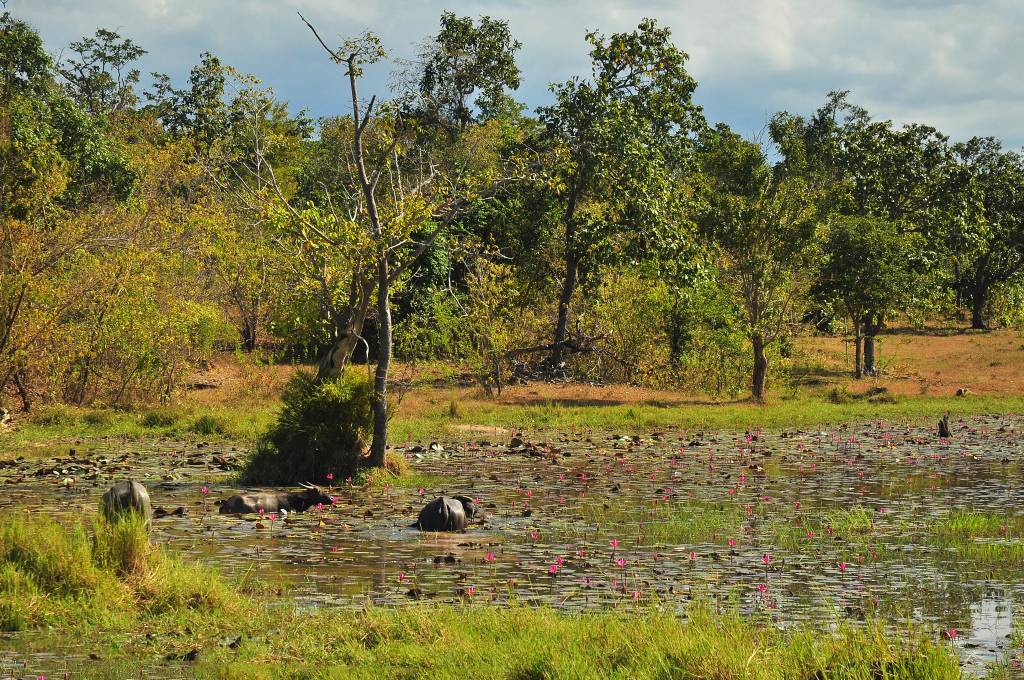 Zwischen den Ortschaften "Non Phay" und "Non Oudum" sahen wir am Strassenrand einen flachen See, in dem einige Wasserbüffel herumtapsten.