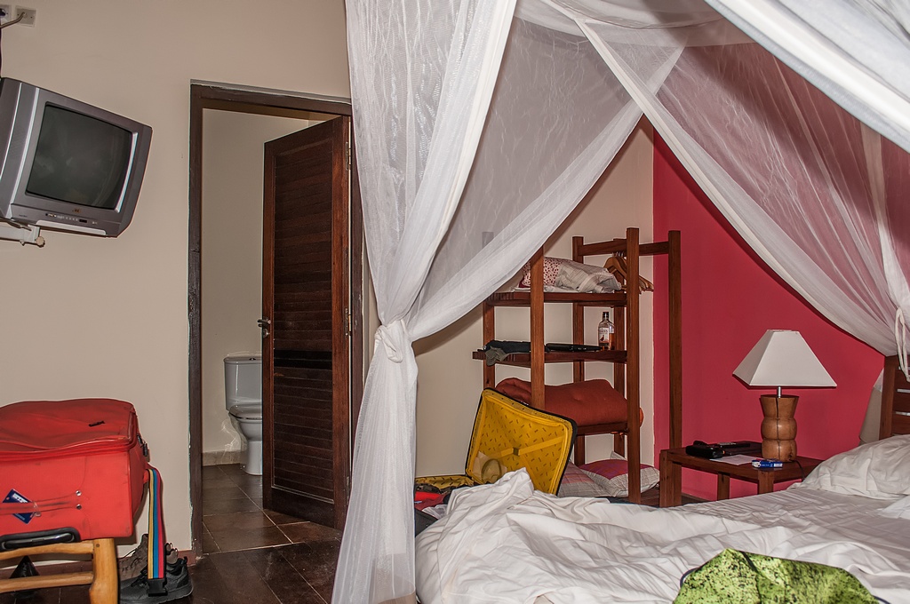 Im Zimmer selbst waren ein Einzel- und ein Doppelbett, über denen Mückennetze angebracht waren.