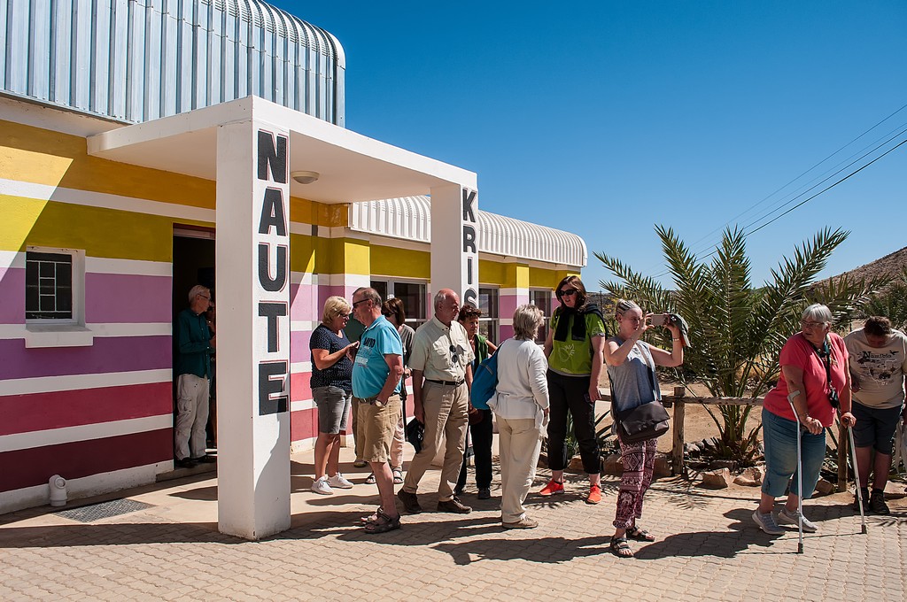 Naute Kristall Cellar and Distillery, wo wir deren Speziellen, namibischen Schnäpse probiert haben. Gin, Obstler und Nappa (Nappa wegen Namibia) so wie Dandy (eine Art Brandy). Dazu gab es zwischen durch Häppchen von Bilton und Käse.