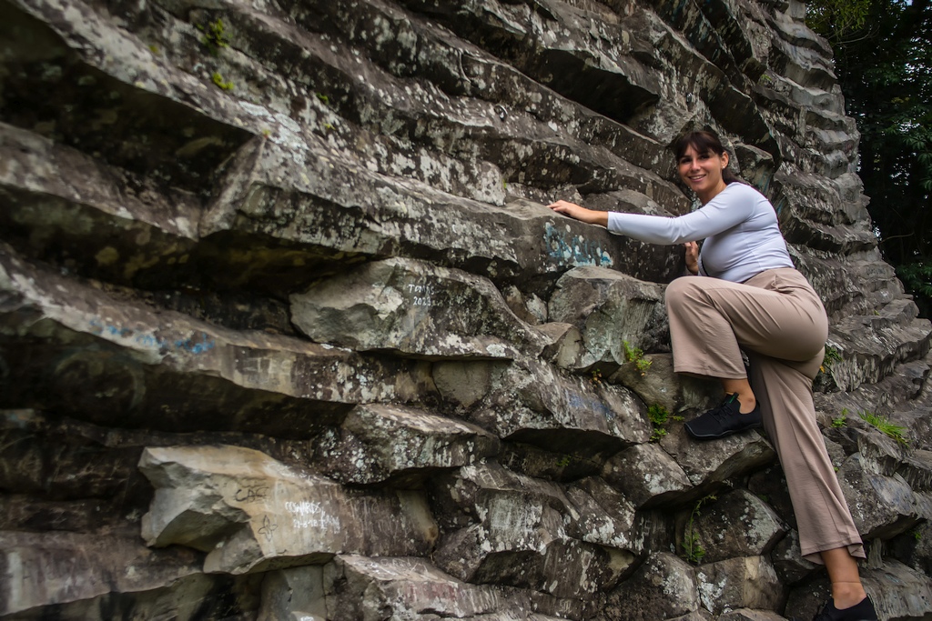 Er zeigte uns zuerst eine Kletterwand aus Basalt, die hier sehr beliebt war. Direkt neben an war ein kleiner Wasserfall.