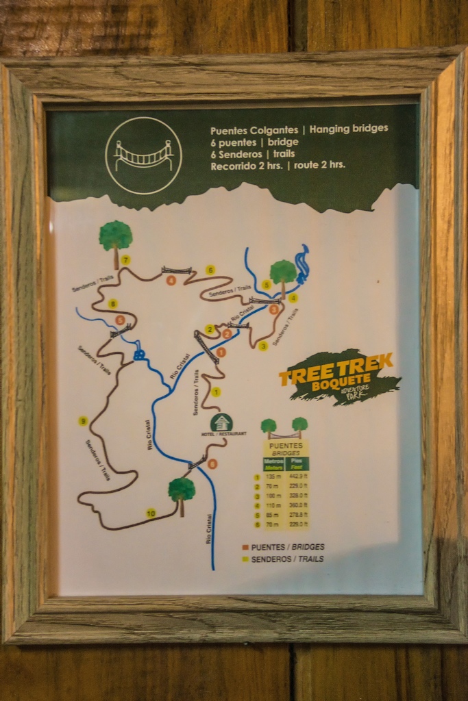 Tree Trek Mountain Resort. Was in 1700 Metern Höhe weit abseits anderer Häuser und mitten in der Natur lag. In dieser Höhe hatte inzwischen Nieselregen eingesetzt und der Nebel begrenzte die Sicht auf 100 Meter. Das kommt im Nebelwald täglich mal vor. Daher ja auch der Name. Dieses Hotel war eigentlich ein Zentrum für Aktivitäten. Es gab Hängebrückenwanderungen, Einen Kaffee-Trail und Canopy-Strecken. Ebenso wurden Klettertouren angeboten.