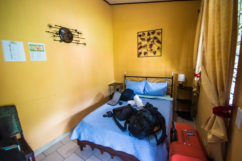 Das "Tree Trek Mountain Resort" in Boquete hatte 3 Sterne. Es lag in 1700 Metern Höhe mitten in der Natur des Nebelwalds. Es gab einen stündlichen Shuttle-Bus (bis 16 Uhr), mit dem man kostenlos nach Boquete fahren konnte (10 Kilometer). Unser Zimmer im Erdgeschoss, mit überdachter Terrasse und Tisch und Stühlen, hatte keine Klimaanlage (unnötig in der Höhe). Es gab ein Doppelbett und einen gefliesten Boden. Ansonsten TV, eine Dusche und ein friemelieges Schloss. Einen Fön gab es nicht. WLAN funktioniert ohne Passwort und auch sehr gut, doch Telefonnetz war keines erreichbar.