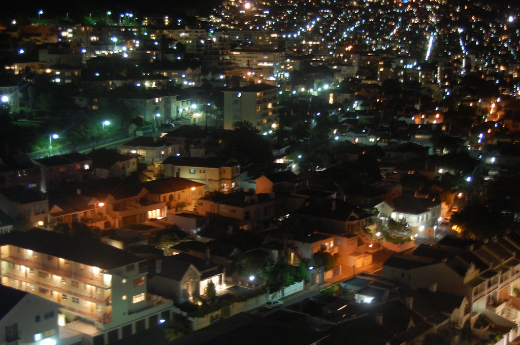 Am Abend war es leider sehr windig und regnerisch. Der Tafelberg war auch kaum zu sehen. Wir liefen durch die Strassen und suchten zuerst einen Laden, in dem es Haarspray zu kaufen gab, da unseres ausgegangen war. Nicht einfach in diesem Stadtteil am Samstagabend. Nachdem wir dieses erledigt hatten, begannen wir nach einem netten Restaurant zu suchen. Es wurde bereits dunkel, als wir eine Bar mit Restaurant an der "Main Road" fanden, was uns gefiel (Es sah nicht so teuer und edel aus). Inzwischen waren wir bis zum Stadtteil Summerset gelaufen. Wir waren also schon fast in der City, wo man bei Dunkelheit oder nach Ladenschluss oder am Wochenende (was eigentlich alles zutraf) nicht sein sollte.