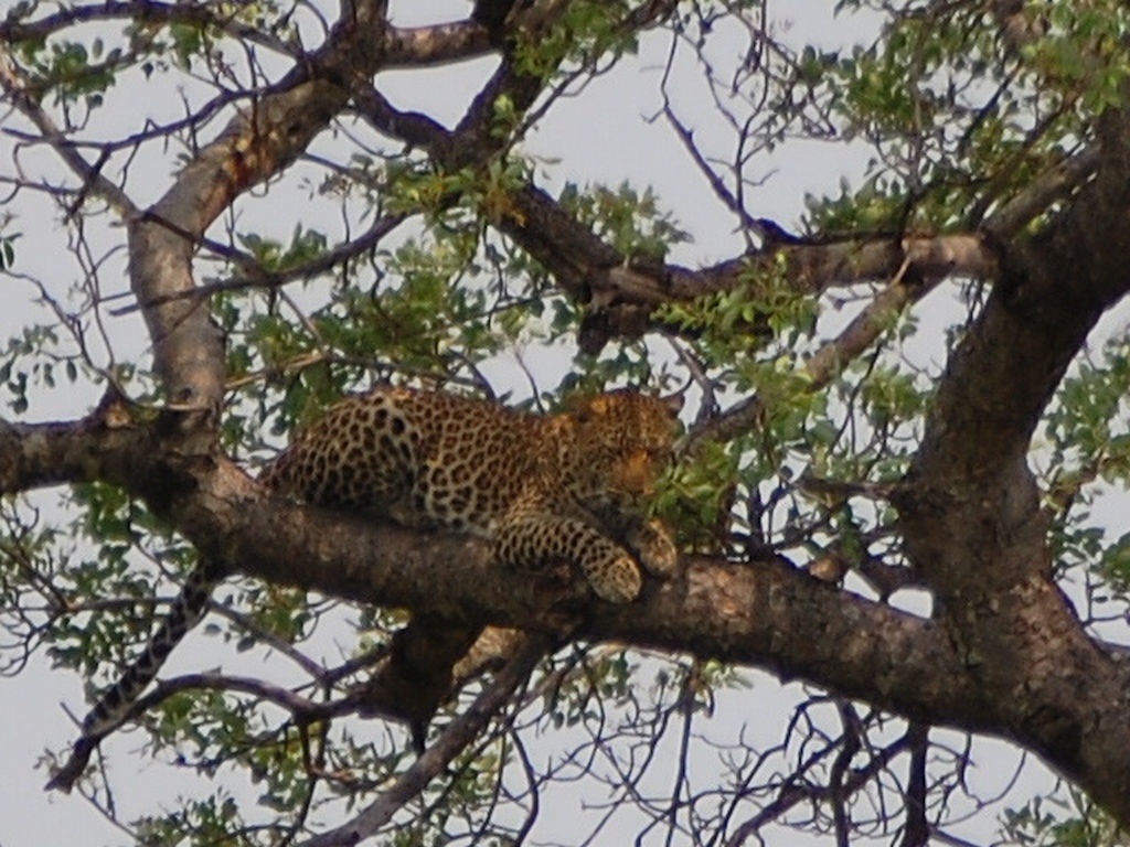 Von nun an hatten wir mehr Glück mit den Tieren. Wir sahen eine Elefantenherde direkt an der Strasse. Die Herde wechselte über die Strasse und wir standen mit dem Wagen mitten drin. Ein tolles Erlebniss!. Nun schickten sich die Fahrer öfters Nachrichten per SMS, wo sie Tiere gesehen hatten. Auch sprachen sie kurz miteinander, wenn wir uns trafen und machten Zeichen auf der Strasse. So sahen wir Giraffen, Leoparden, Löwen (allerdings nur die Ohren im Grass) und Kudus aus nächster Nähe.