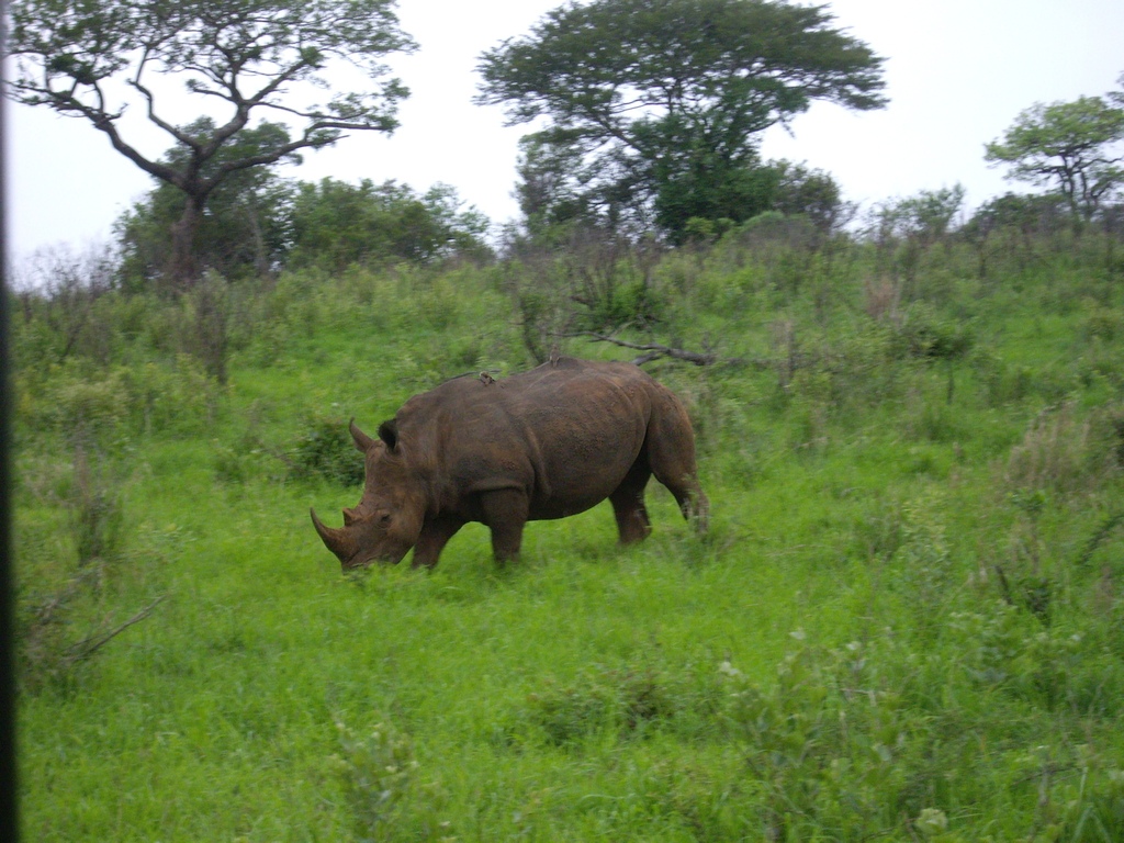 3 Stunden fuhren wir kreuz- und quer durch den Nationalpark. Wir sahen dabei Nashörner, Elefanten, Warzenschweine, Geier, Zebras, Giraffen, Büffe, Gnus und Nyalas. Wir kamen hier noch viel näher an die Tiere heran als im Krügerpark. Besonders bei Büffeln und Nashörnern war es eine spannende Sache, einem solchen Tier weniger als 5 Meter in der freien Natur gegenüber zu stehen.