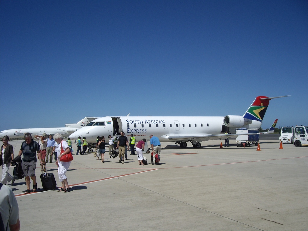 Unsere Reiseleiterin Angel flog mit uns. Mit einer 76-Sitzigen Bombardier CRJ200 der South African Express flogen wir in Richtung Südwesten nach Port Elizabeth. Der Flug dauerte etwa eine Stunde.