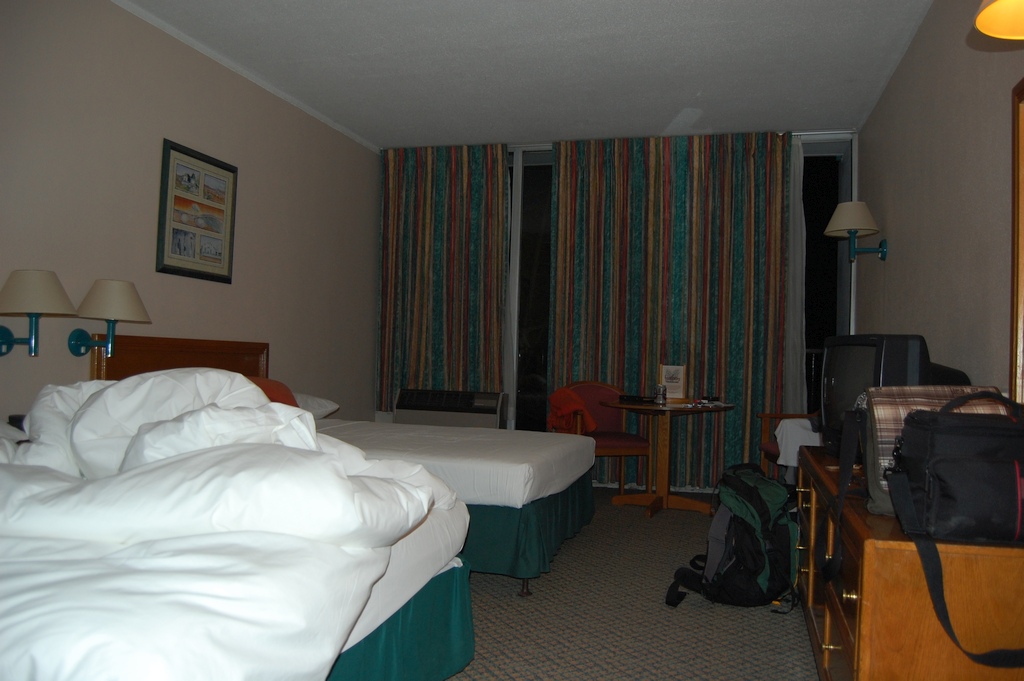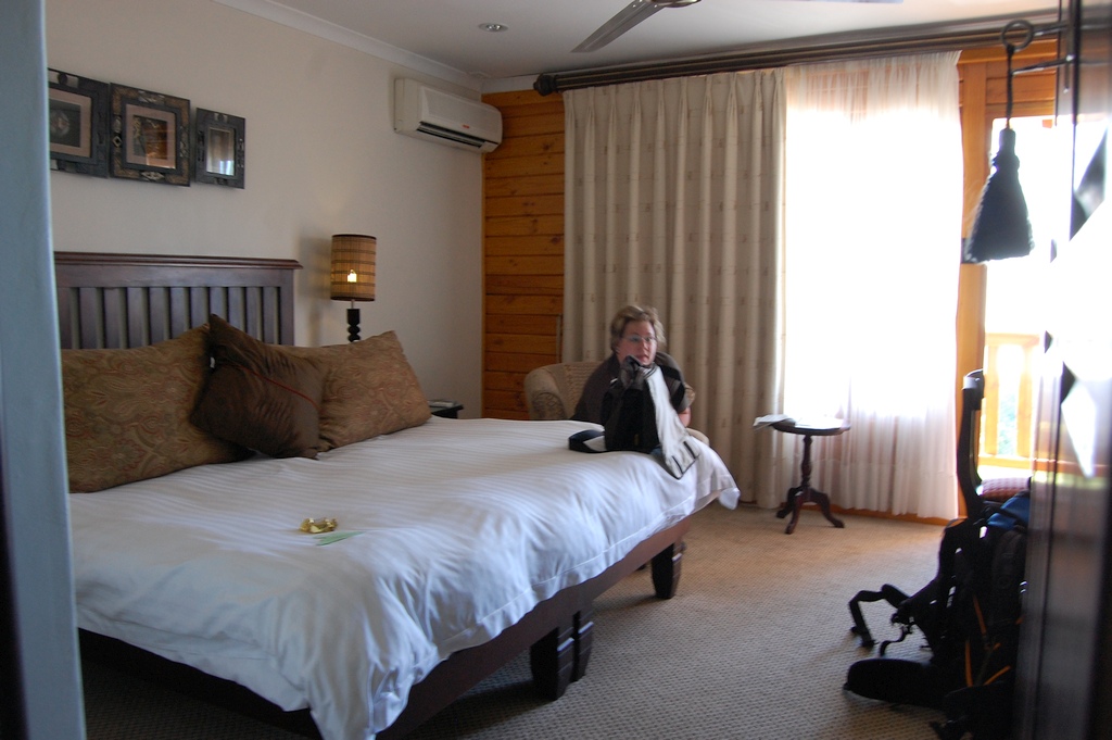Unser Zimmer im Premier-Hotel in Pretoria war ausgestattet mit einem (leeren) Kühlschrank, LCD-TV, Klimaanlage, Safe, einen geräumigen Bad mit Dusche, Wanne und Fön. Der Raum hatte Teppichboden und das Fenster zeigte zur Hauptstrasse. Innerhalb des gesamten Hotels ist das Rauchen verboten. Es gab einen sehr kleinen Pool (1,1 bis 1,5 m tief) im kleinen Garten mit einer noch kleinerer Liegewiese, ein gutes Restaurant und eine ebenso gute Bar. Obwohl das Hotel direkt an einer Hauptstrasse lag, hört man den Strassenlärm kaum. Vor dem Hotel, dessen Zäune zusätzlich mit Natodraht geschützt waren, patroulierte ständig die Security des Hotels. Die Preise für das Essen im Hotel waren OK.
