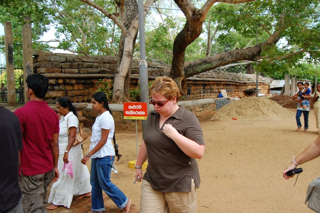 In Anuradhapura besichtigten wir den ältesten Tempel Sri Lankas. Hier wurde erstmals der Backenzahn Buddha`s aufbewahrt, der heute in Kandy in einem Kloster lagert. Vor dem Tempel muß man die Schuhe ausziehen, denn ein buddhistischer Tempel darf nur barfuß betreten werden. Nicht einfach bei 35 Grad und Wegen aus spitzem Schotter (Aua!).