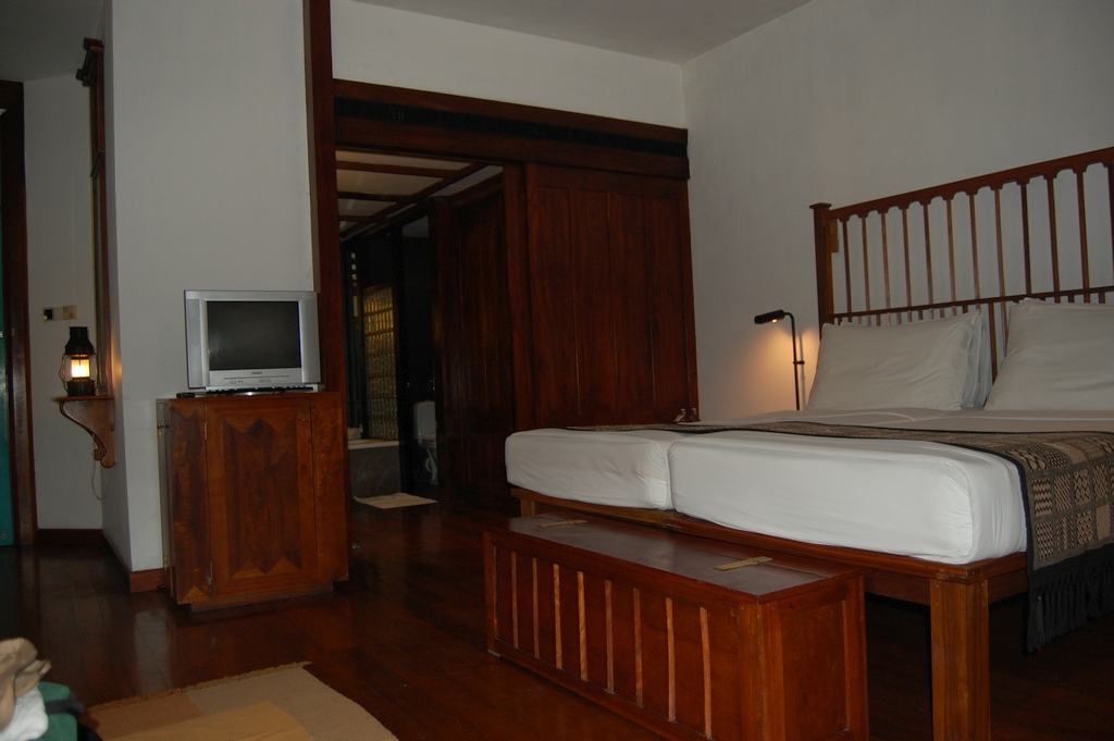 Das "Jetwing Lighthouse" in Galle hatte 5 Sterne und das merkt man: Unser Zimmer 315 in der ersten Etage hatte (endlich mal) eine geräuschlos arbeitende Klimaanlage die auch immer das machte, was wir eingestellt hatten, einen Safe, eine Minibar, einen grossen Balkon, Echtholzböden aus poliertem Teakholz, ein tolles 3-teiliges Bad mit Wanne im Vorraum, extra Duschraum und getrenntem WC. Das komplette Bad war mit Schieferfliesen verkleidet. Ausserdem gab es TV, Radio, einen Deckenventilator und eine Sitzecke sowie einen Schreibtisch. Auch das Abendessen in Buffetform hatte uns gut geschmeckt.