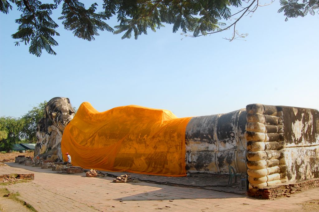 Wir besuchten die Ruinen von "Wat Yai Chai Mongkon", einem Tempel aus dem Jahr 1357 mit dem den grössten liegenden Buddha Asiens, der in dem Ruinenfeld der ehemaligen Hauptstadt Siams liegt.