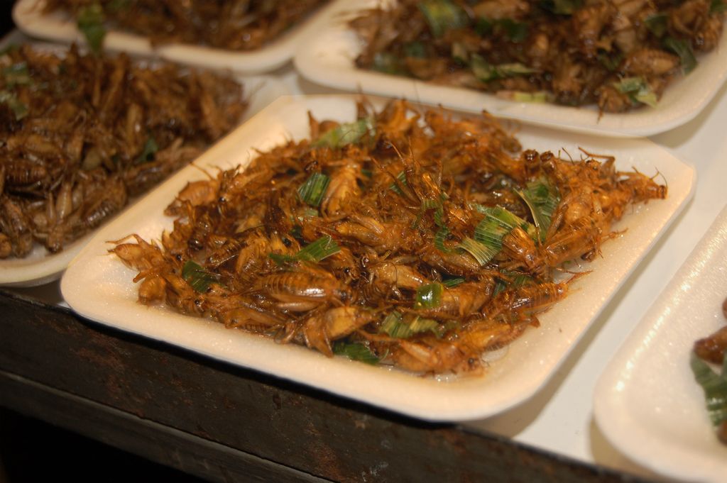 Ausserdem probierten wir hier eine spezialität der Gegend :frittierte Bambusraupen.