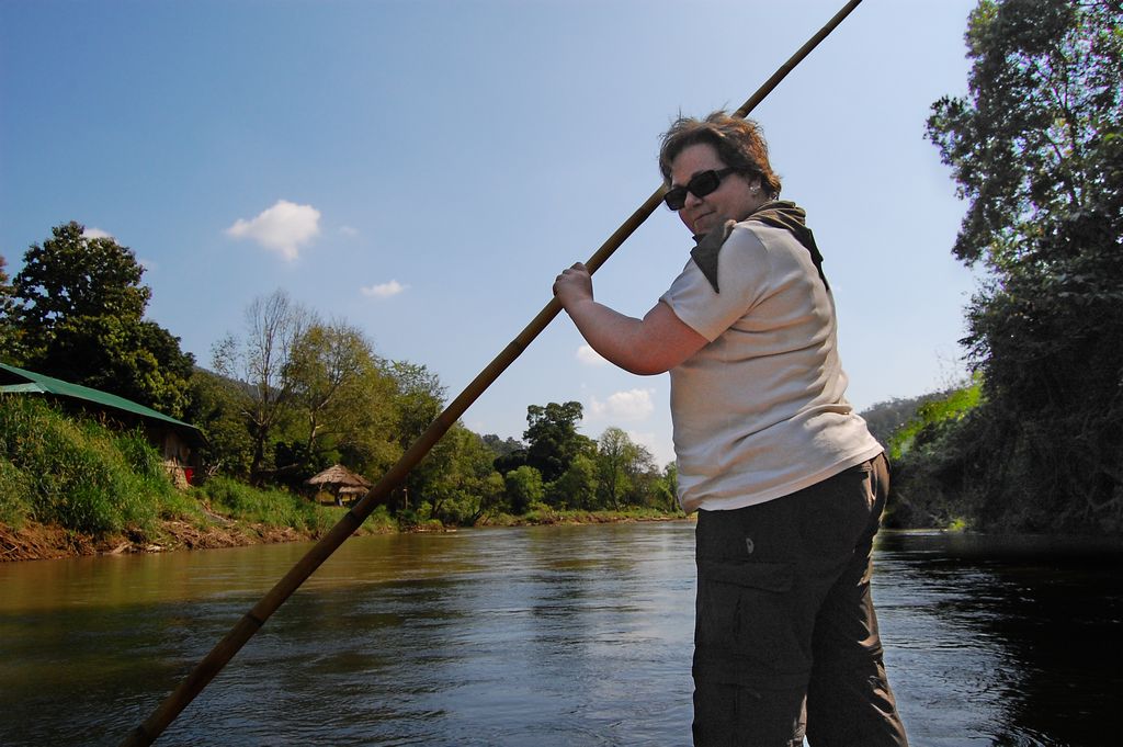 Auch wir übernahmen zwischendurch die Stecken und steuerten das Floß über den Fluss.