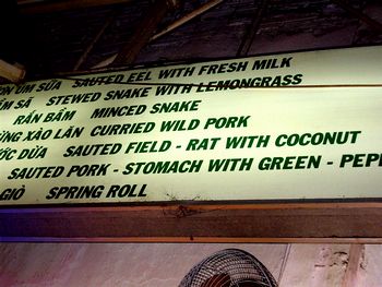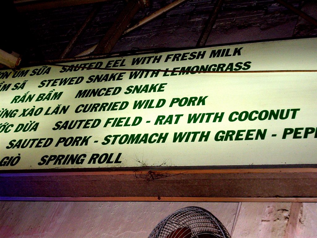Also gingen wir wieder zu dem guten Restaurant (Luong Son?) von gestern, wo man so toll grillen konnte. Susanne hatte Lachs mit Sesam und ich Krokodil. Man beachte auch die anderen Köstlichkeiten auf der Leuchtreklame.