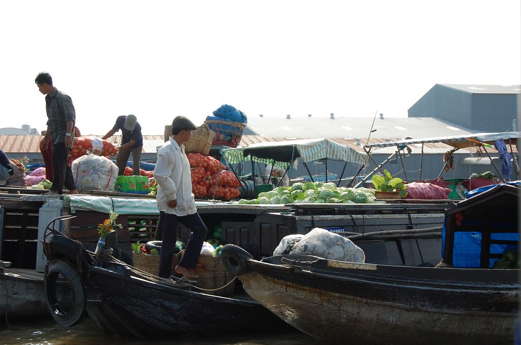 Hier lagen viele Holzboote der Händler, zwischen denen Bauern mit ihren kleinen Booten kreuzten. An jedem Boot war ein langer Holzstab befestigt, an dem einige Früchte hingen. So konnte jeder erkennen, was es auf den Booten zu kaufen oder verkaufen gab.